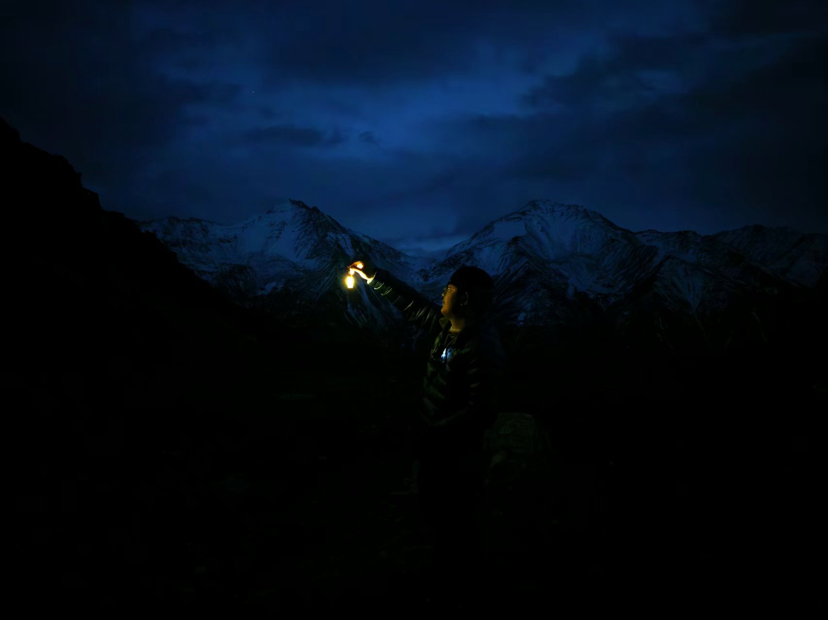 钻进自己睡袋后翻来覆去都无法睡着,旁边一个在剧烈咳嗽,一个在呻吟,大家都无法入睡,我最惨,胃胀/恶心,想拉屎,头还剧痛,睡不着爬起来准备上个厕所,结果却发现外面突然开始下起了暴雪,已经有5cm深了,硬着头皮去旱厕蹲了五分钟,回来吃了粒布洛芬,还是无法入睡,因为暴雪,信号突然全消失了,期间也想过放弃第二天的冲顶,准备一起床就跟向导说放弃